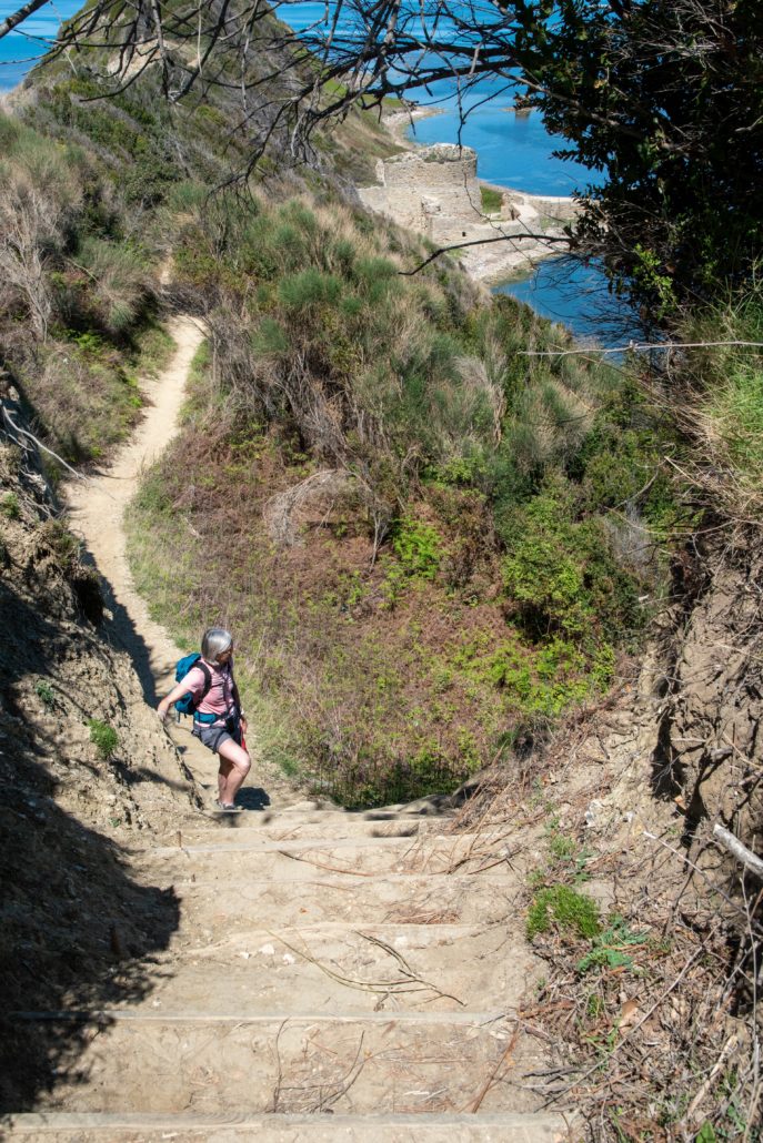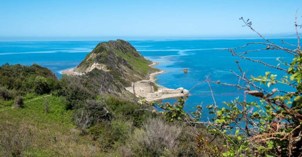 Highlight ist für uns eine kurze Wanderung zu einer Festungsruine, die am Ende der steilen Klippen liegt und über einen wildromantischen eng bewachsenen Weg zu erreichen ist. Auf dem Weg begegnen uns nur Pferde, Ziegen und Schildkröten.