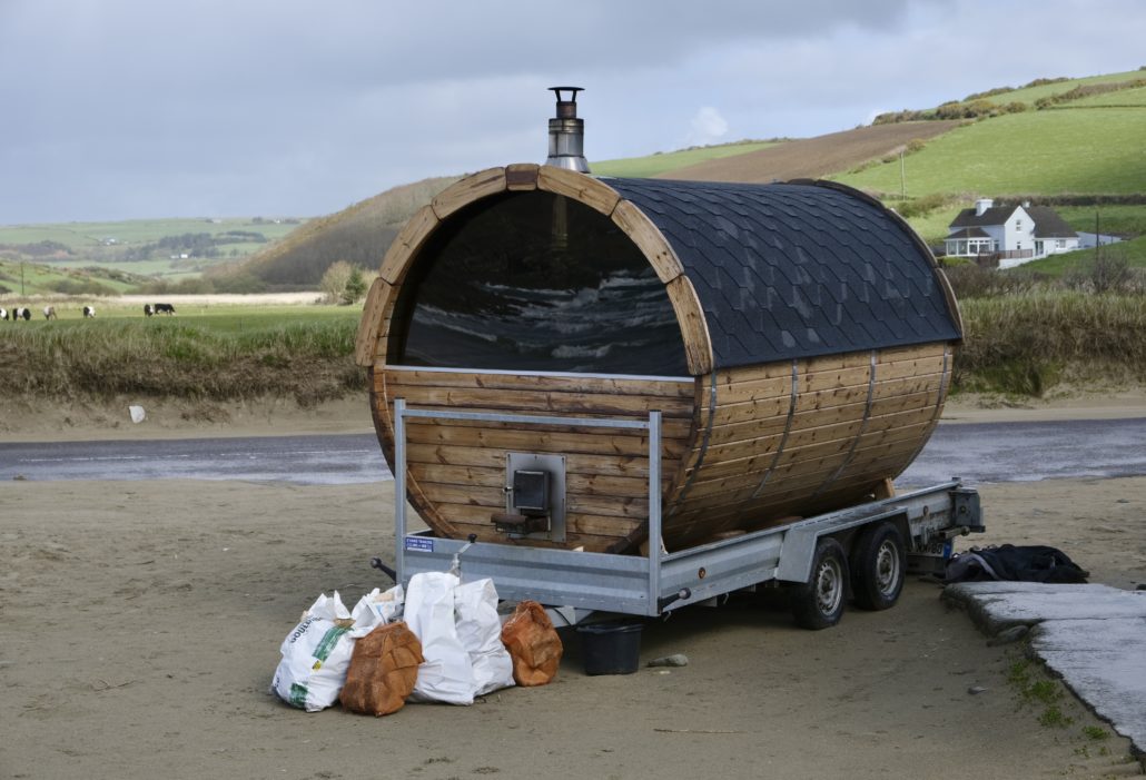 Dort gibt es noch eine weitere Besonderheit. Neben uns steht eine fahrbare Fasssauna, die heute eingeheizt wird. Diese Attraktion scheint bei den Iren sehr beliebt zu sein und auch wir machen mit. Durch die Scheibe der Sauna blickt man auf die Atlantikwellen und kann anschließend direkt dort eintauchen … na ja, einer von uns bis zu den Knien und der andere ganz. Ihr dürft raten, wer von uns mutiger war.