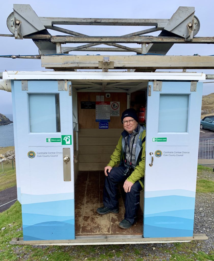 Zur Spitze der Beara Halbinsel führt eine sehr schmale Panoramastraße bis zu einer Seilbahnstation. Irlands einzige Kabinenbahn wirkt nicht gerade modern und sieht eher aus wie eine hängende Hütte. Die kurze Fahrt über den Atlantik zur vorgelagerten Insel Dursey kostet uns schon etwas Überwindung.