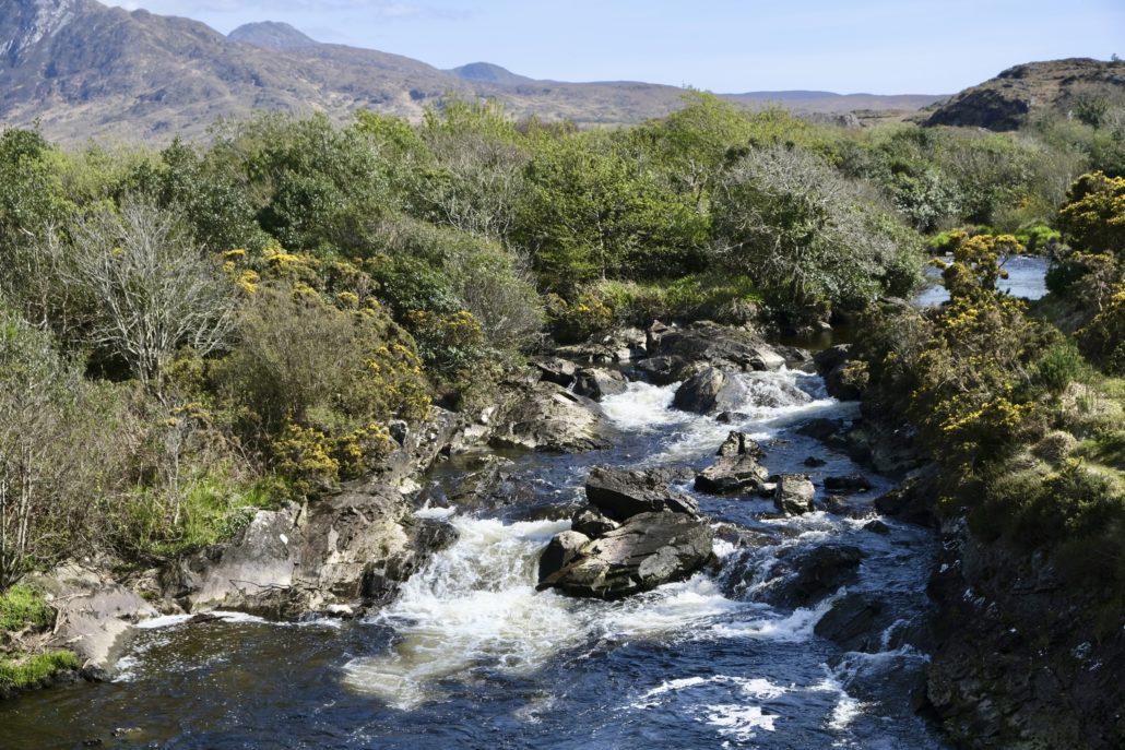Trotzdem zieht es uns am dritten Tag weiter. Es geht durch eine immer enger werdende Fjordlandschaft Richtung Leenane mit Blick auf das Wasser, die karg bewachsenen Berge im Hintergrund und reißende Bäche.