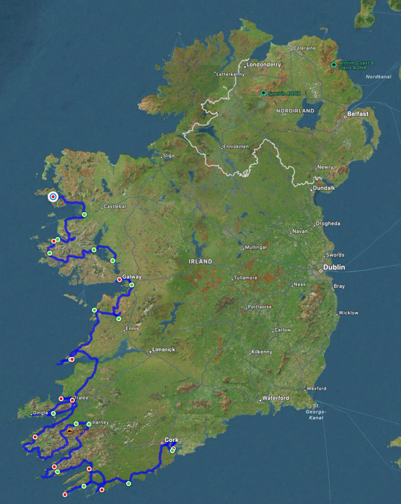 3. Die Küste nördlich von Galway kennen wir noch nicht. Aber die Landschaft macht einen tollen Eindruck. Guiness und Whiskey plus irische Musik sind eine gute Kombination. Wie wünschen euch ab jetzt wenig Wind und viel Sonne.