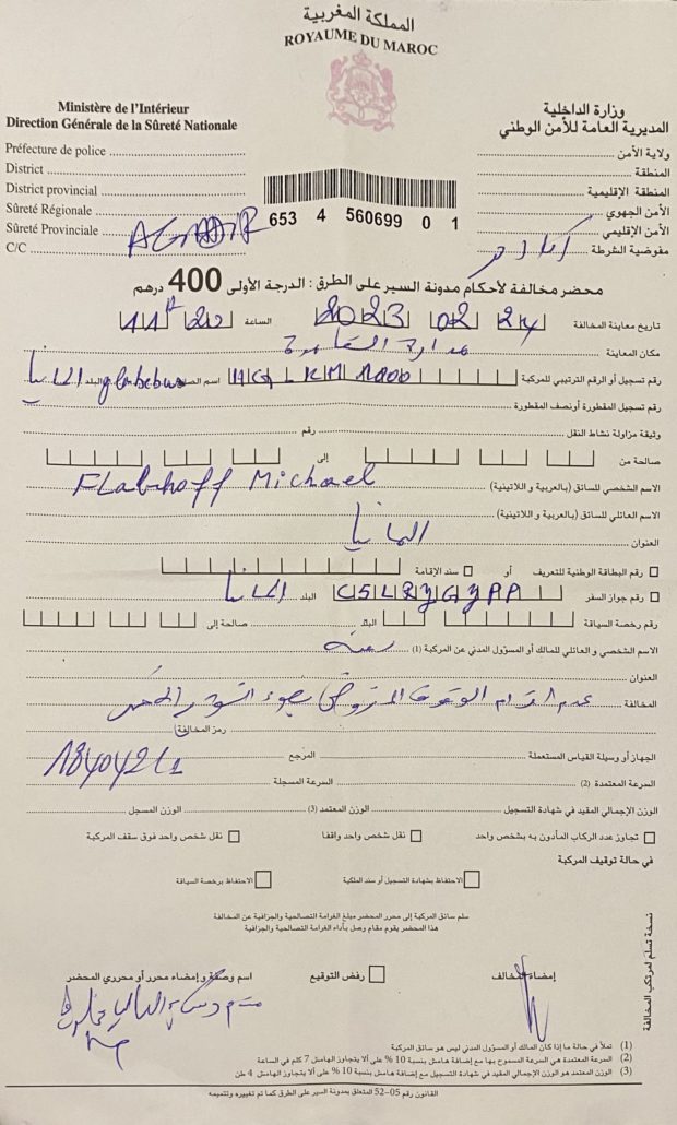 Die Polizeipräsenz in Marokko ist enorm. An jeder Ein- und Ausfallstraße in den Städten und an fast jeder größeren Straßenkreuzung gibt es Polizeikontrollen. Touristen werden meistens freundlich durchgewunken. Meistens. In Agadir werden wir nach einem großen Kreisverkehr angehalten, angeblich haben wir eine rote Ampel überfahren. Wir werden von dem Officer belehrt, dass das ‚very dangerous‘ und ‚illegal‘ ist … bitte 400 Dirham, umgerechnet 40 €. Wir verstehen leider erst zu spät, dass er uns auch eine Alternative, 200 Dirham ohne Quittung anbietet.