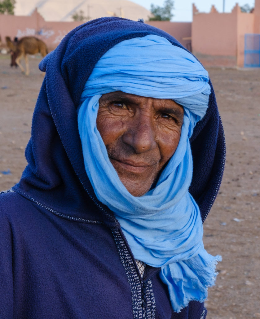 Im weiteren Verlauf unserer heutigen Tour ändert sich die Landschaft immer mehr zur Wüste und ein starker Wind peitscht den Sand durch die Straßen. Es ist eine karge und beeindruckende Natur. Man kann jetzt schon viele Menschen mit den bekannten Berberschals sehen.