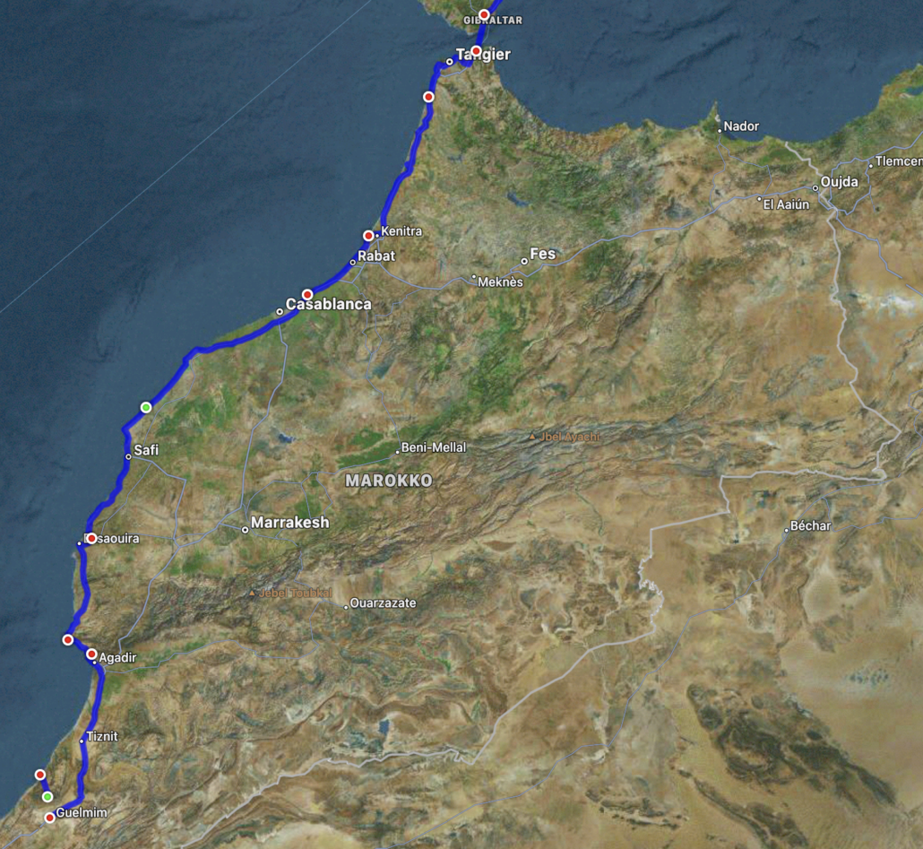 Die Westsahara grenzt im Süden an Marokko, das dieses Territorium für sich beansprucht. Völkerrechtlich ist dies jedoch bis heute umstritten. Die Sahrauis kämpfen für einen unabhängigen Staat und es gab erst 1991 einen Waffenstillstand. Unabhängig davon ist unser Camper ohnehin nicht ‚wüstentauglich‘